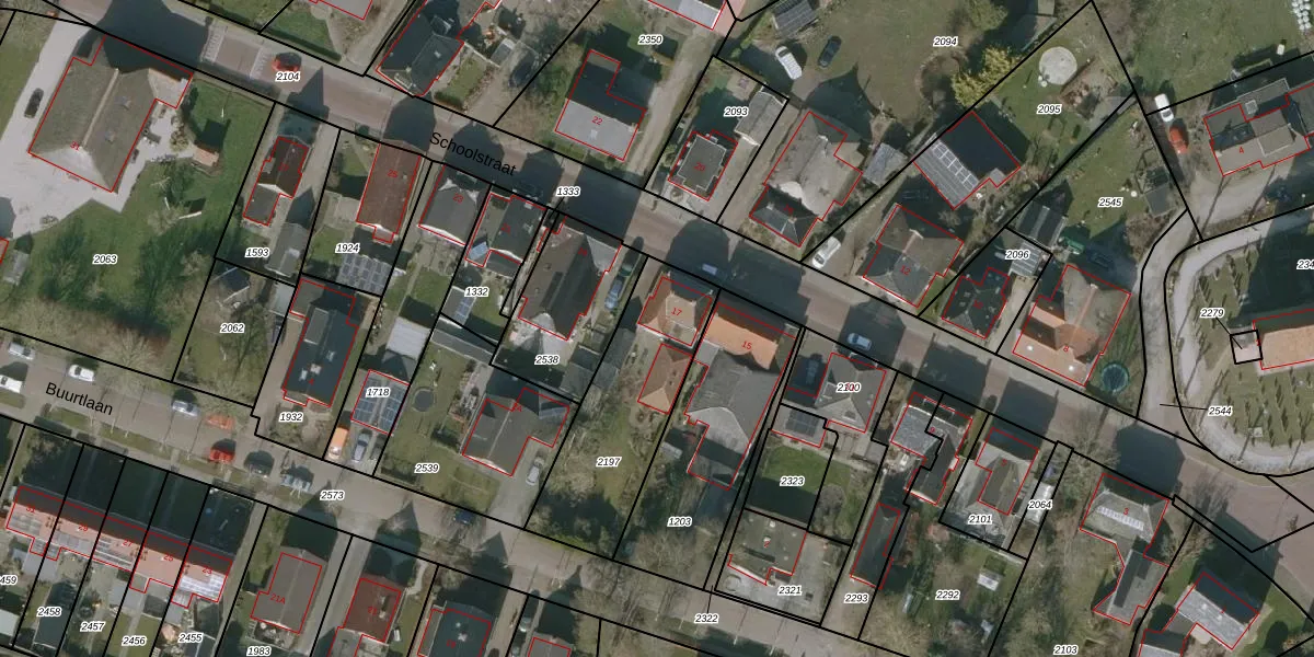 Gebruik de zoekbalk of klik op een perceel voor informatie over de adressen binnen dit perceel.