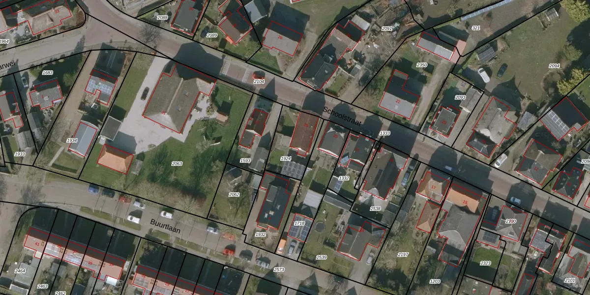 Het perceel waarop Schoolstraat 25 staat heeft een oppervlakte van 315 m². Dit is een groot perceel. De perceeloppervlakte wordt geregistreerd door het Kadaster. Gedetailleerde informatie over de maten van dit perceel kunt u vinden in het rapport Kadastrale kaart met maatvoering van Schoolstraat 25.