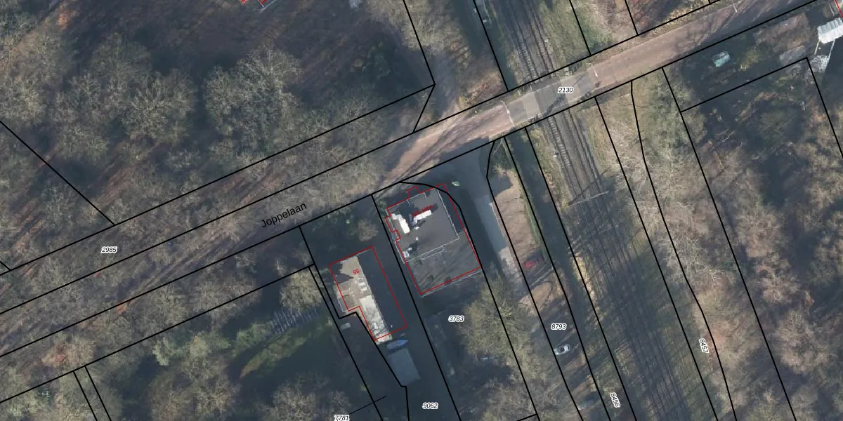 Het perceel waarop Joppelaan 100 staat heeft een oppervlakte van 1130 m². Dit is een zeer groot perceel. De perceeloppervlakte wordt geregistreerd door het Kadaster. Gedetailleerde informatie over de maten van dit perceel kunt u vinden in het rapport Kadastrale kaart met maatvoering van Joppelaan 100.