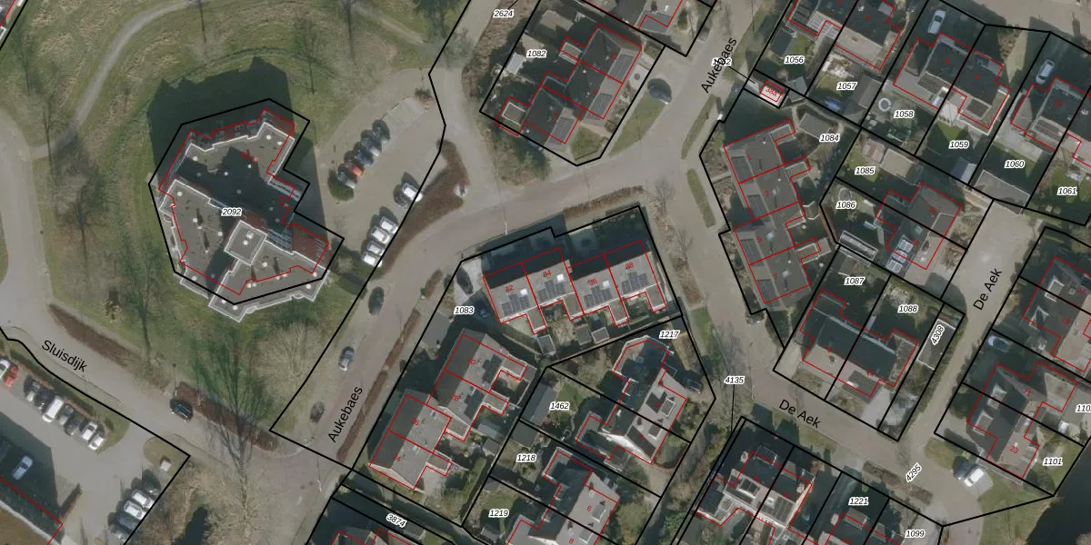 Aukebaes 34 is gelegen op kadastraal perceel JRE00D1083. Deze kadastrale aanduiding is uniek en wordt gebruikt door het Kadaster om eigendomsrechten en andere zakelijke rechten vast te leggen. Het perceel maakt onderdeel uit van de kadastrale gemeente Joure.