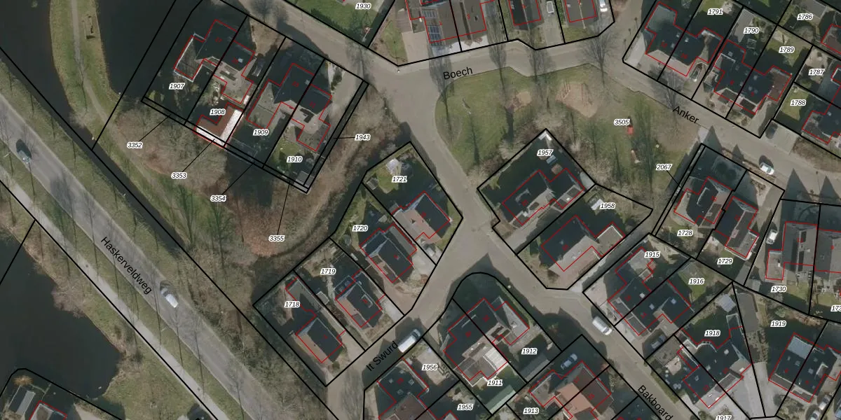 Het perceel waarop Bakboard 19 staat heeft een oppervlakte van 338 m². Dit is een groot perceel. De perceeloppervlakte wordt geregistreerd door het Kadaster. Gedetailleerde informatie over de maten van dit perceel kunt u vinden in het rapport Kadastrale kaart met maatvoering van Bakboard 19.