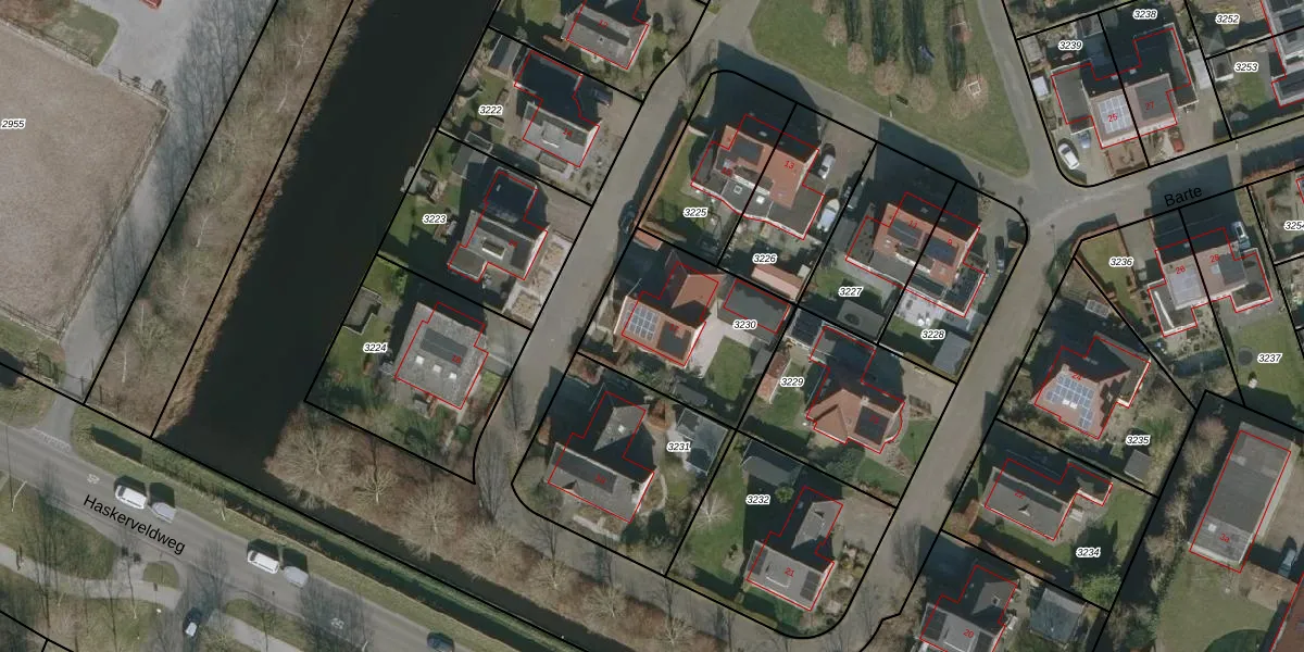 Het perceel waarop Barte 17 staat heeft een oppervlakte van 581 m². Dit is een groot perceel. De perceeloppervlakte wordt geregistreerd door het Kadaster. Gedetailleerde informatie over de maten van dit perceel kunt u vinden in het rapport Kadastrale kaart met maatvoering van Barte 17.