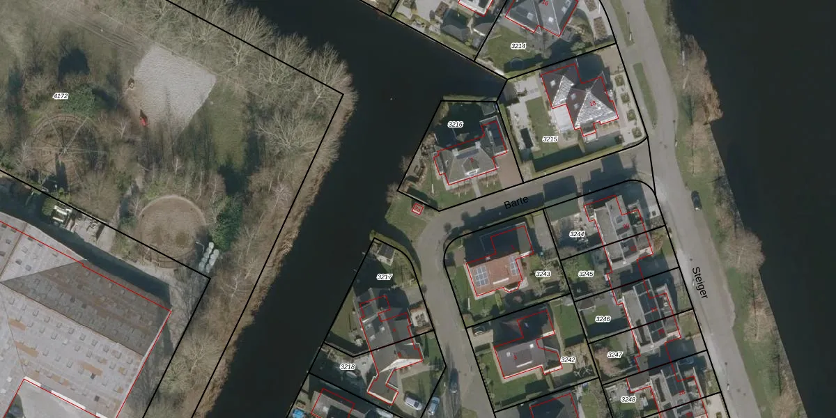 Het perceel waarop Barte 2-a staat heeft een oppervlakte van 1,7 ha. Dit is een zeer groot perceel. De perceeloppervlakte wordt geregistreerd door het Kadaster. Gedetailleerde informatie over de maten van dit perceel kunt u vinden in het rapport Kadastrale kaart met maatvoering van Barte 2-a.