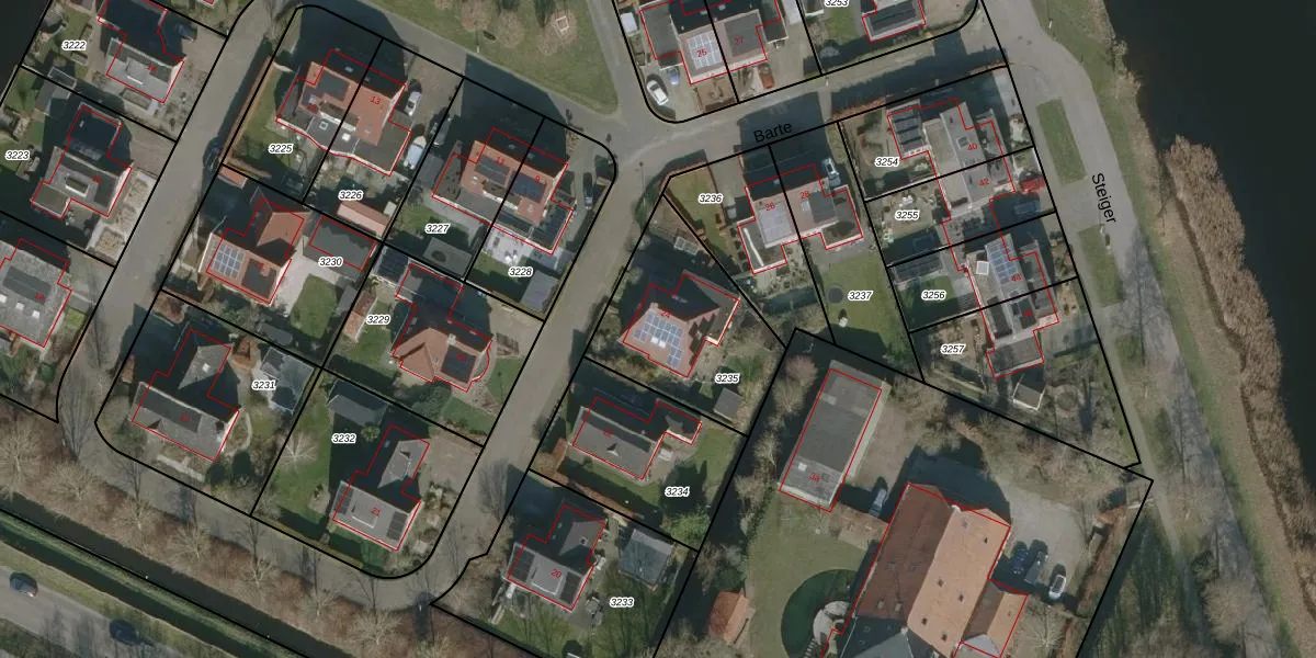 Het perceel waarop Barte 24 staat heeft een oppervlakte van 580 m². Dit is een groot perceel. De perceeloppervlakte wordt geregistreerd door het Kadaster. Gedetailleerde informatie over de maten van dit perceel kunt u vinden in het rapport Kadastrale kaart met maatvoering van Barte 24.