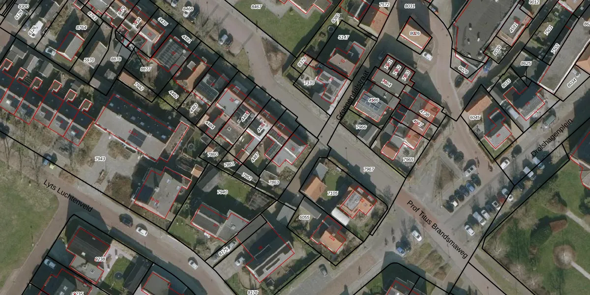 Gebruik de zoekbalk of klik op een perceel voor informatie over de adressen binnen dit perceel.
