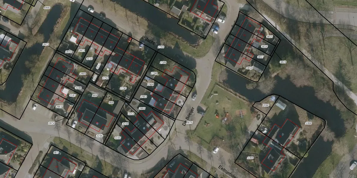 Het perceel waarop De Boeijer 38 staat heeft een oppervlakte van 166 m². Dit is een middelgroot perceel. De perceeloppervlakte wordt geregistreerd door het Kadaster. Gedetailleerde informatie over de maten van dit perceel kunt u vinden in het rapport Kadastrale kaart met maatvoering van De Boeijer 38.