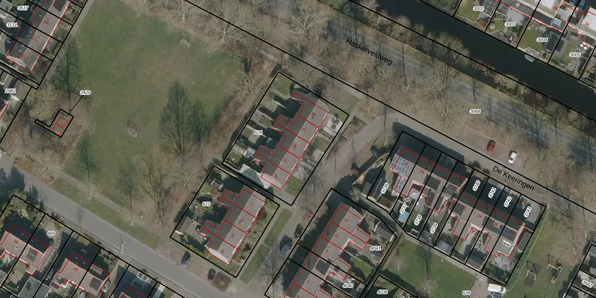 De Keeringen 13 is gelegen op kadastraal perceel JRE00D624. Deze kadastrale aanduiding is uniek en wordt gebruikt door het Kadaster om eigendomsrechten en andere zakelijke rechten vast te leggen. Het perceel maakt onderdeel uit van de kadastrale gemeente Joure.