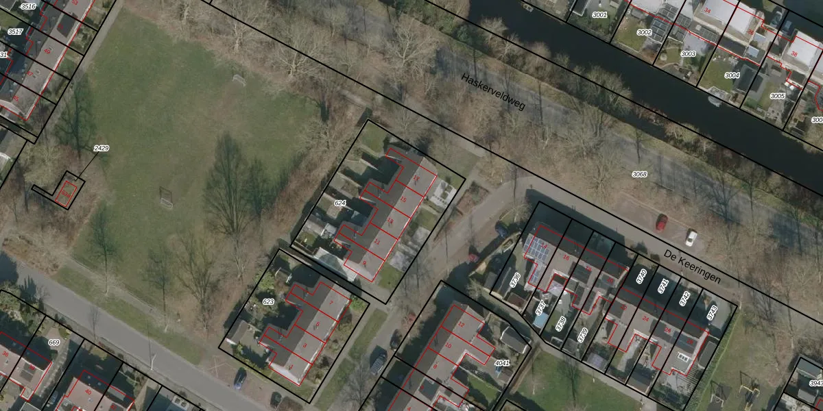 Het perceel waarop De Keeringen 15 staat heeft een oppervlakte van 997 m². Dit is een groot perceel. De perceeloppervlakte wordt geregistreerd door het Kadaster. Gedetailleerde informatie over de maten van dit perceel kunt u vinden in het rapport Kadastrale kaart met maatvoering van De Keeringen 15.
