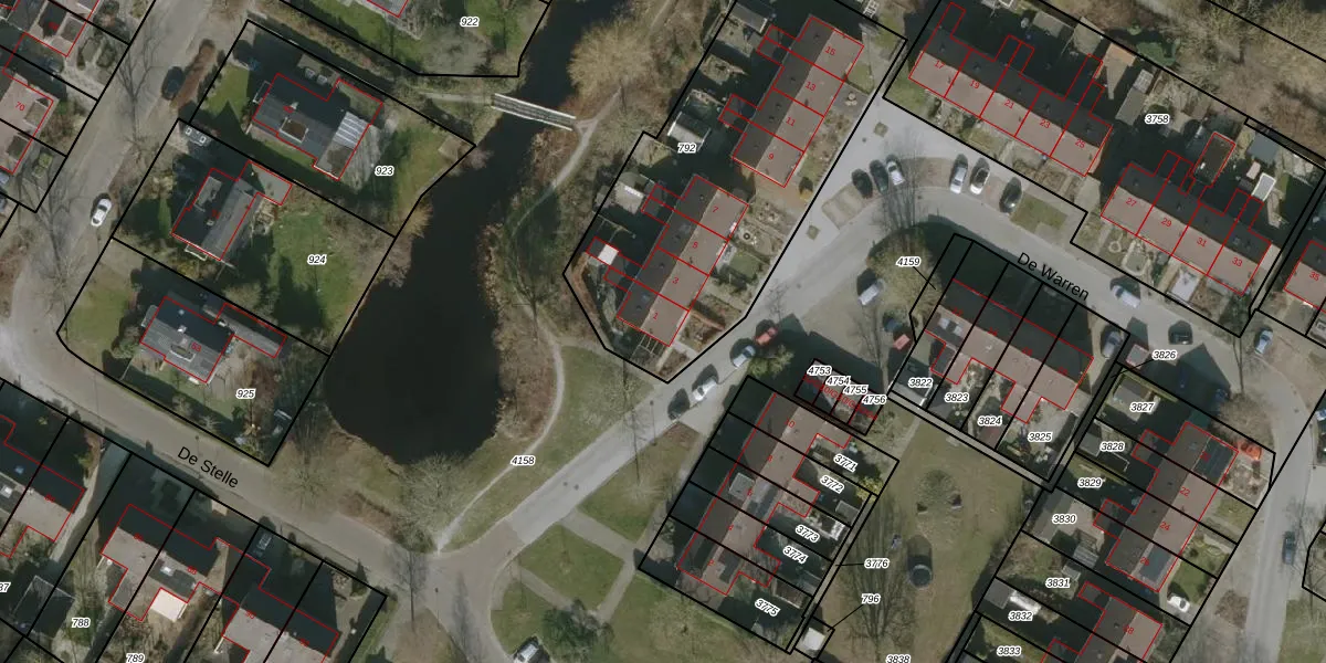 Het perceel waarop De Warren 1 staat heeft een oppervlakte van 1550 m². Dit is een zeer groot perceel. De perceeloppervlakte wordt geregistreerd door het Kadaster. Gedetailleerde informatie over de maten van dit perceel kunt u vinden in het rapport Kadastrale kaart met maatvoering van De Warren 1.