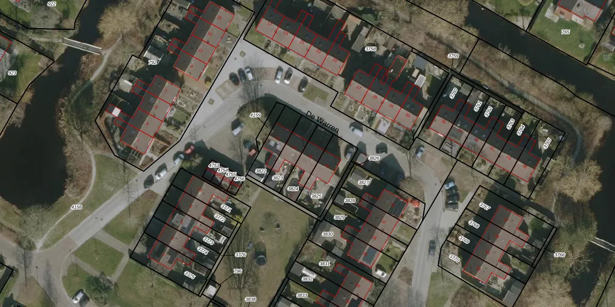 De Warren 16 is gelegen op kadastraal perceel JRE00D3824. Deze kadastrale aanduiding is uniek en wordt gebruikt door het Kadaster om eigendomsrechten en andere zakelijke rechten vast te leggen. Het perceel maakt onderdeel uit van de kadastrale gemeente Joure.