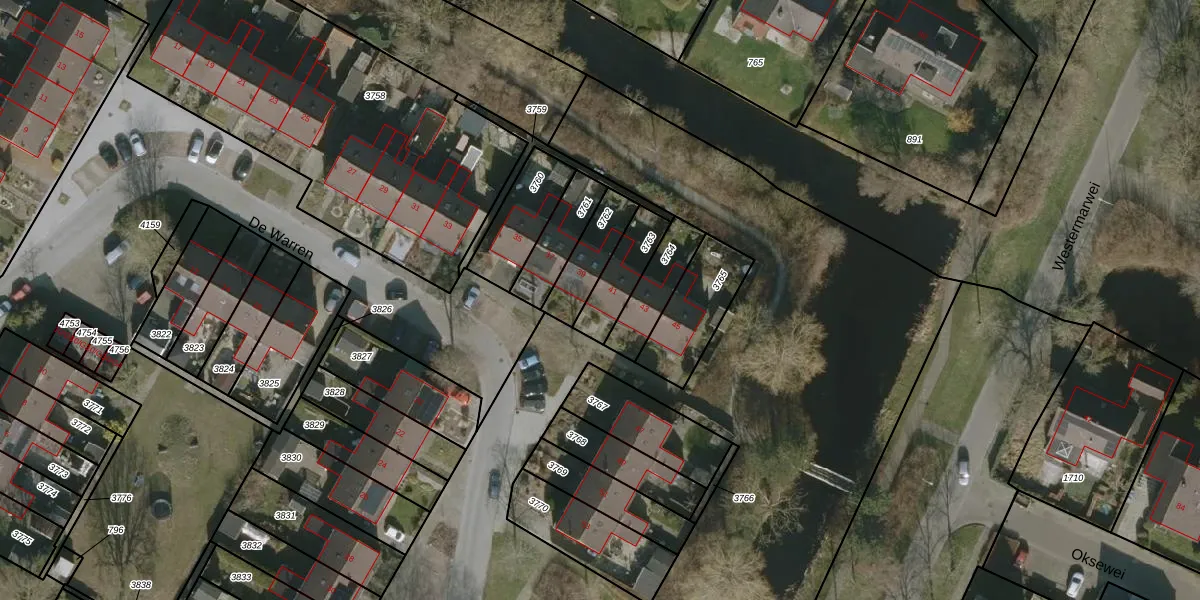 De Warren 41 is gelegen op kadastraal perceel JRE00D3763. Deze kadastrale aanduiding is uniek en wordt gebruikt door het Kadaster om eigendomsrechten en andere zakelijke rechten vast te leggen. Het perceel maakt onderdeel uit van de kadastrale gemeente Joure.