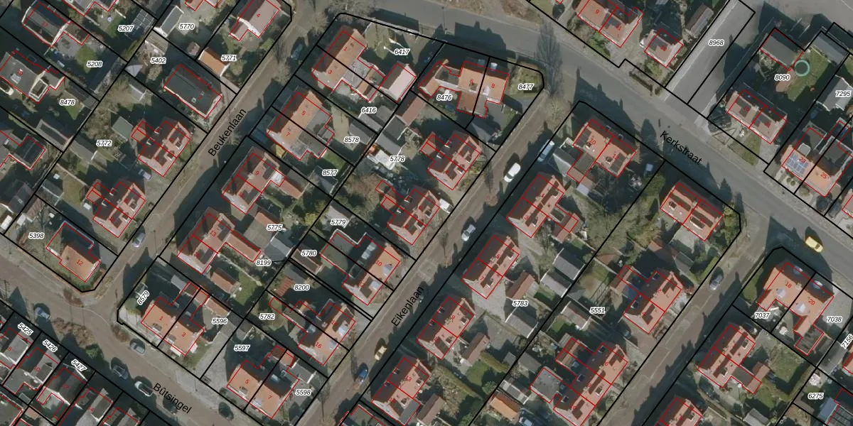 Het perceel waarop Eikenlaan 6 staat heeft een oppervlakte van 754 m². Dit is een groot perceel. De perceeloppervlakte wordt geregistreerd door het Kadaster. Gedetailleerde informatie over de maten van dit perceel kunt u vinden in het rapport Kadastrale kaart met maatvoering van Eikenlaan 6.