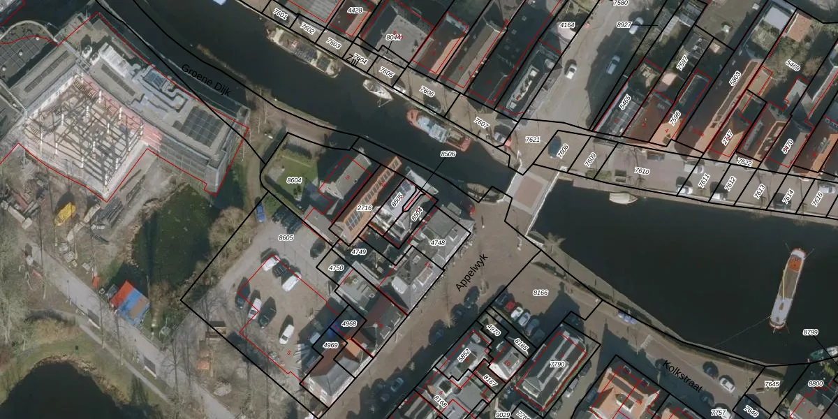 Groene Dijk 1 is gelegen op kadastraal perceel JRE00A8504. Deze kadastrale aanduiding is uniek en wordt gebruikt door het Kadaster om eigendomsrechten en andere zakelijke rechten vast te leggen. Het perceel maakt onderdeel uit van de kadastrale gemeente Joure.