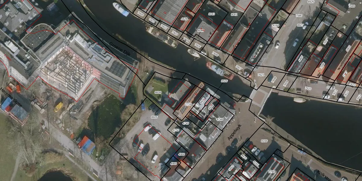 Groene Dijk 3 is gelegen op kadastraal perceel JRE00A8604. Deze kadastrale aanduiding is uniek en wordt gebruikt door het Kadaster om eigendomsrechten en andere zakelijke rechten vast te leggen. Het perceel maakt onderdeel uit van de kadastrale gemeente Joure.