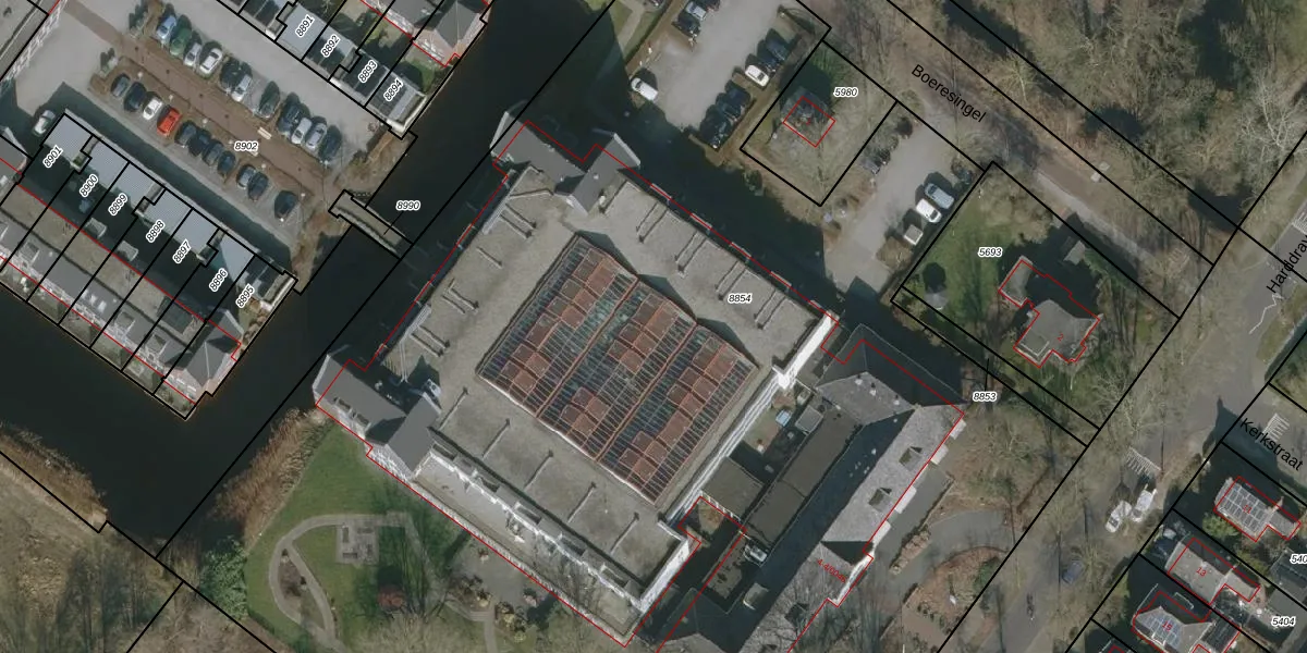 Het adres is gelegen op perceel 8854 in de sectie A en de kadastrale gemeente Joure. De kadastrale aanduiding is aldus JRE00-A-8854. De oppervlakte van het perceel is 1,0 ha. Dat is groter dan gemiddeld in Joure, waar de gemiddelde perceeloppervlakte op 3663,93 m² ligt. De grootste perceeloppervlakte in de kadastrale gemeente is 79,7 ha. De kleinste oppervlakte bedraagt 0 m². Op het perceel zijn 49 adressen aanwezig. De huidige grenzen van het perceel zijn digitaal in de Basisregistratie Kadaster (BRK) geregistreerd op 27-06-2022.