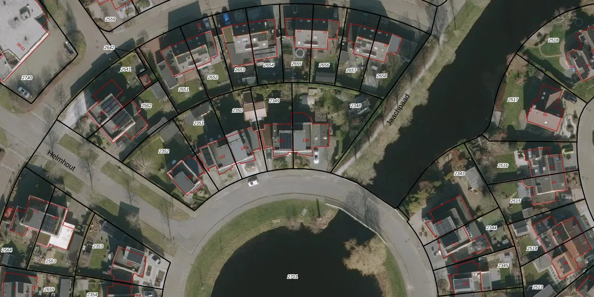 Het perceel waarop Helmhout 136 staat heeft een oppervlakte van 642 m². Dit is een groot perceel. De perceeloppervlakte wordt geregistreerd door het Kadaster. Gedetailleerde informatie over de maten van dit perceel kunt u vinden in het rapport Kadastrale kaart met maatvoering van Helmhout 136.