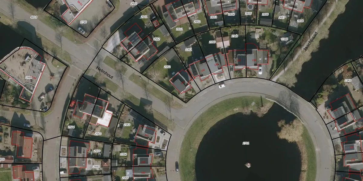 Helmhout 144 is gelegen op kadastraal perceel JRE00D2352. Deze kadastrale aanduiding is uniek en wordt gebruikt door het Kadaster om eigendomsrechten en andere zakelijke rechten vast te leggen. Het perceel maakt onderdeel uit van de kadastrale gemeente Joure.