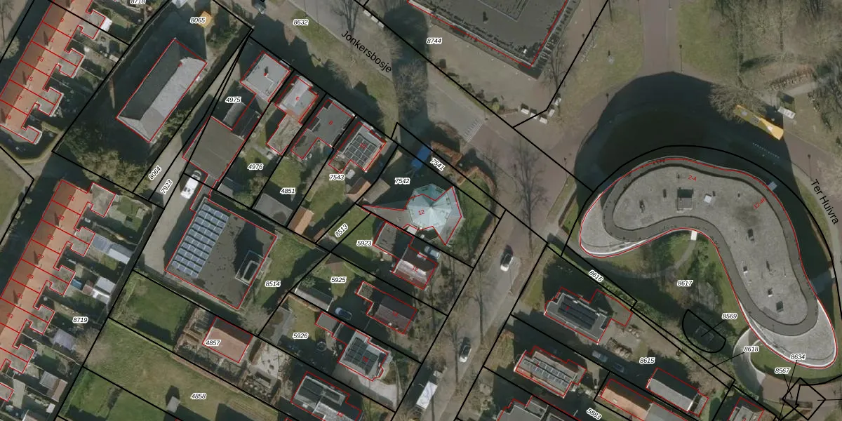 Jonkersbosje 12 is gelegen op kadastraal perceel JRE00A7542. Deze kadastrale aanduiding is uniek en wordt gebruikt door het Kadaster om eigendomsrechten en andere zakelijke rechten vast te leggen. Het perceel maakt onderdeel uit van de kadastrale gemeente Joure.