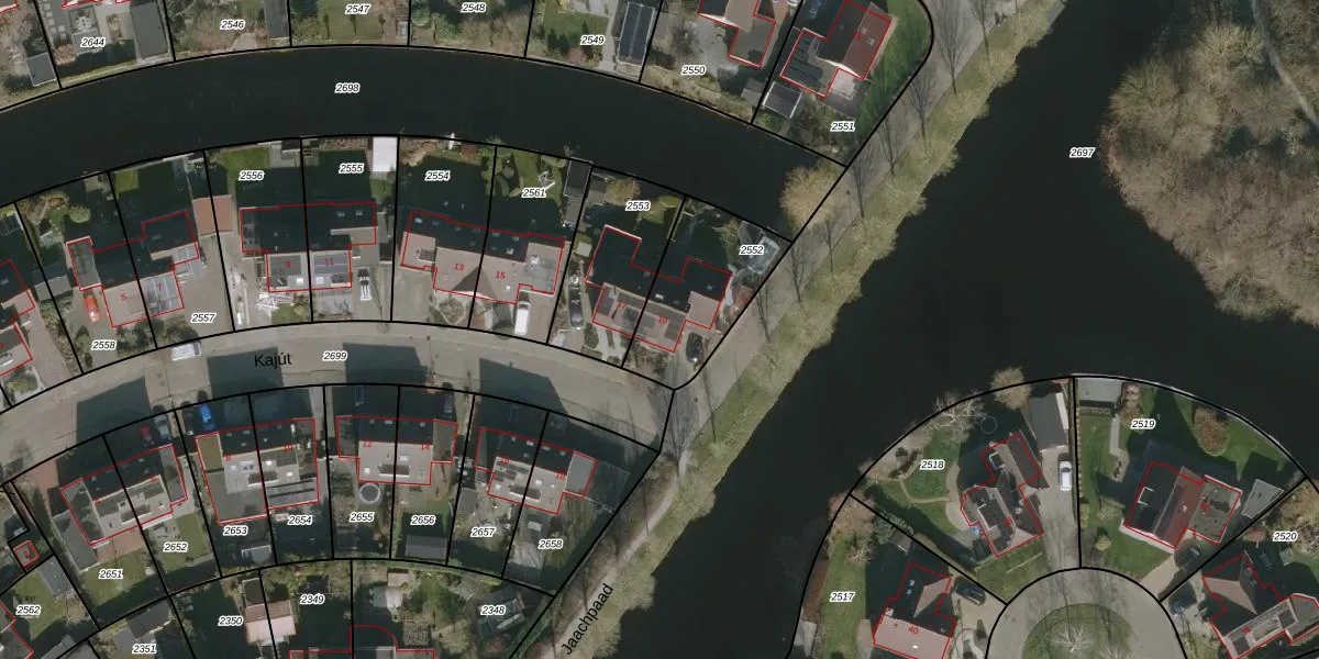 Het perceel waarop Kajút 19 staat heeft een oppervlakte van 388 m². Dit is een groot perceel. De perceeloppervlakte wordt geregistreerd door het Kadaster. Gedetailleerde informatie over de maten van dit perceel kunt u vinden in het rapport Kadastrale kaart met maatvoering van Kajút 19.