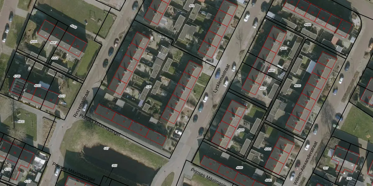 Het perceel waarop Lycklemastraat 16 staat heeft een oppervlakte van 2863 m². Dit is een zeer groot perceel. De perceeloppervlakte wordt geregistreerd door het Kadaster. Gedetailleerde informatie over de maten van dit perceel kunt u vinden in het rapport Kadastrale kaart met maatvoering van Lycklemastraat 16.