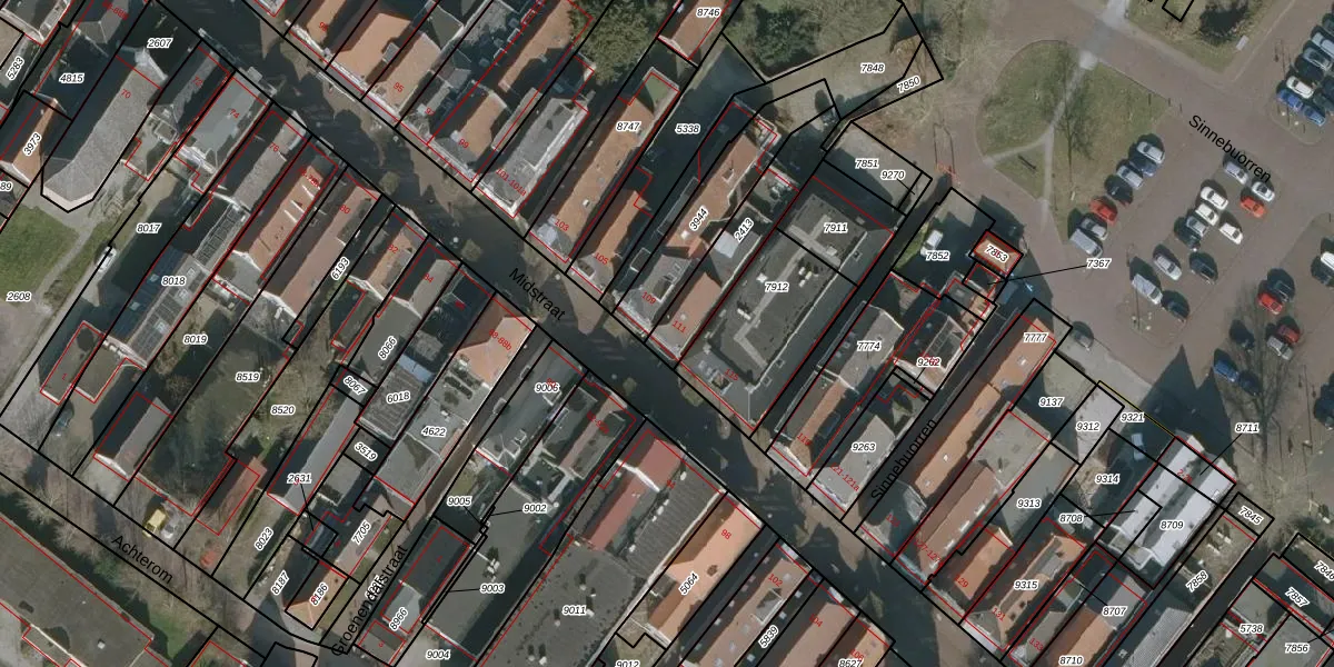 Midstraat 111 is gelegen op kadastraal perceel JRE00A2413. Deze kadastrale aanduiding is uniek en wordt gebruikt door het Kadaster om eigendomsrechten en andere zakelijke rechten vast te leggen. Het perceel maakt onderdeel uit van de kadastrale gemeente Joure.