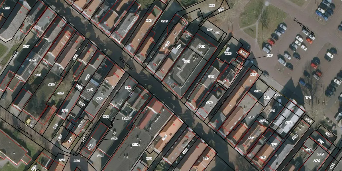 Het perceel waarop Midstraat 115 staat heeft een oppervlakte van 473 m². Dit is een groot perceel. De perceeloppervlakte wordt geregistreerd door het Kadaster. Gedetailleerde informatie over de maten van dit perceel kunt u vinden in het rapport Kadastrale kaart met maatvoering van Midstraat 115.