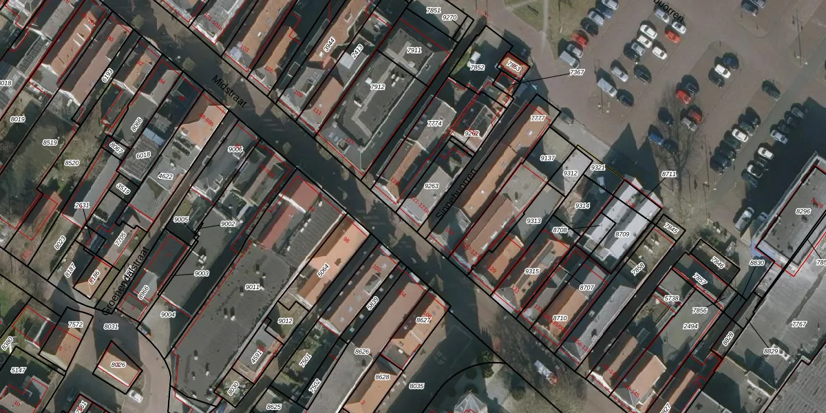 Het perceel waarop Midstraat 121 staat heeft een oppervlakte van 155 m². Dit is een middelgroot perceel. De perceeloppervlakte wordt geregistreerd door het Kadaster. Gedetailleerde informatie over de maten van dit perceel kunt u vinden in het rapport Kadastrale kaart met maatvoering van Midstraat 121.