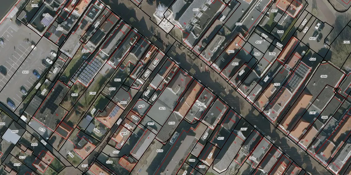 Het perceel waarop Midstraat 60-A staat heeft een oppervlakte van 375 m². Dit is een groot perceel. De perceeloppervlakte wordt geregistreerd door het Kadaster. Gedetailleerde informatie over de maten van dit perceel kunt u vinden in het rapport Kadastrale kaart met maatvoering van Midstraat 60-A.