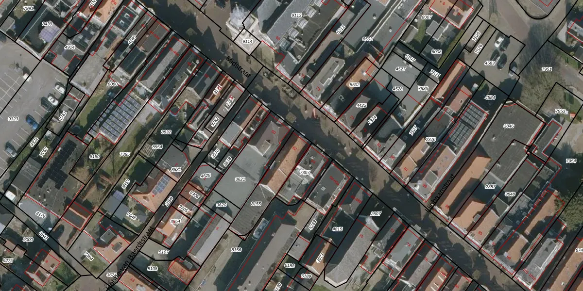 Het perceel waarop Midstraat 62 staat heeft een oppervlakte van 302 m². Dit is een groot perceel. De perceeloppervlakte wordt geregistreerd door het Kadaster. Gedetailleerde informatie over de maten van dit perceel kunt u vinden in het rapport Kadastrale kaart met maatvoering van Midstraat 62.