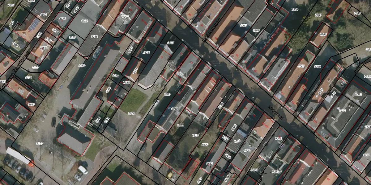 Het perceel waarop Midstraat 76-A staat heeft een oppervlakte van 489 m². Dit is een groot perceel. De perceeloppervlakte wordt geregistreerd door het Kadaster. Gedetailleerde informatie over de maten van dit perceel kunt u vinden in het rapport Kadastrale kaart met maatvoering van Midstraat 76-A.