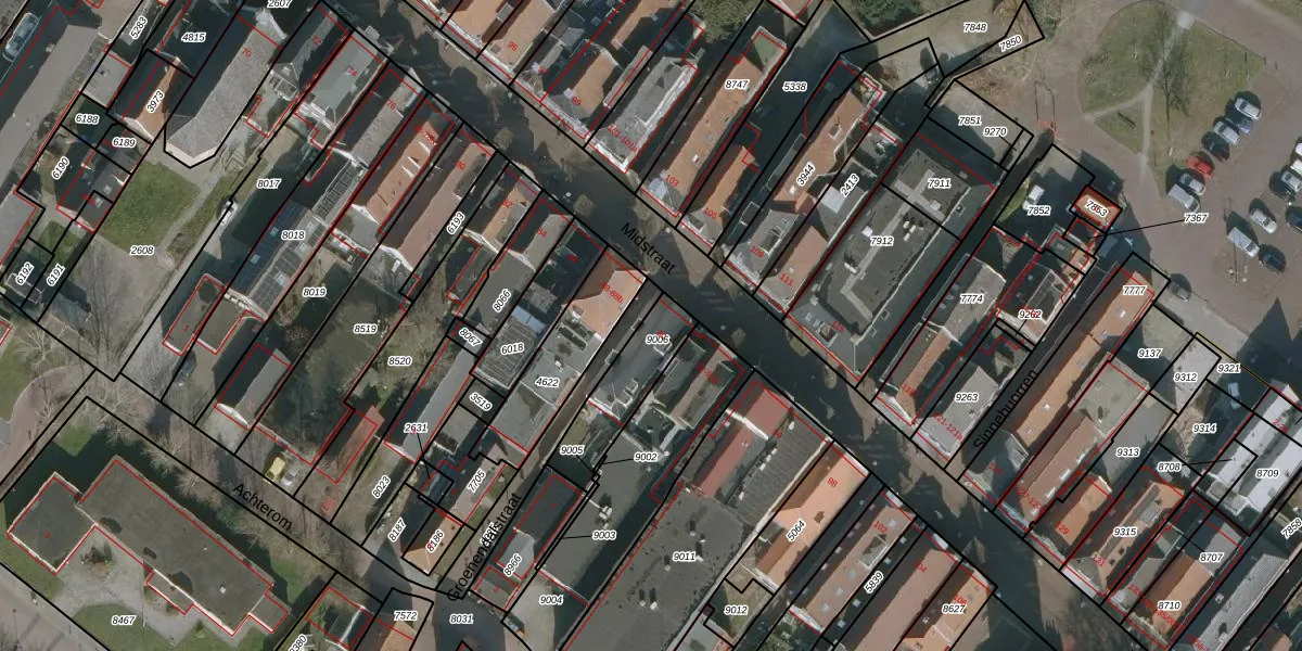 Het perceel waarop Midstraat 90 staat heeft een oppervlakte van 214 m². Dit is een middelgroot perceel. De perceeloppervlakte wordt geregistreerd door het Kadaster. Gedetailleerde informatie over de maten van dit perceel kunt u vinden in het rapport Kadastrale kaart met maatvoering van Midstraat 90.