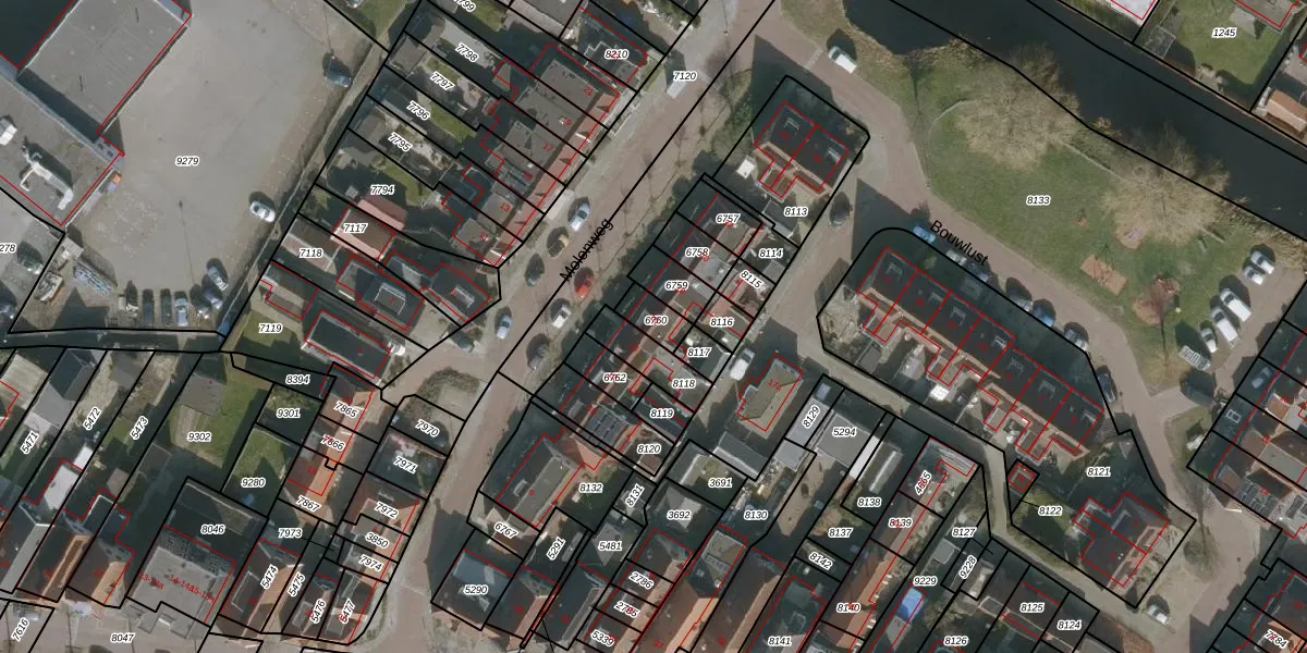 Het perceel waarop Molenweg 16 staat heeft een oppervlakte van 60 m². Dit is een klein perceel. De perceeloppervlakte wordt geregistreerd door het Kadaster. Gedetailleerde informatie over de maten van dit perceel kunt u vinden in het rapport Kadastrale kaart met maatvoering van Molenweg 16.