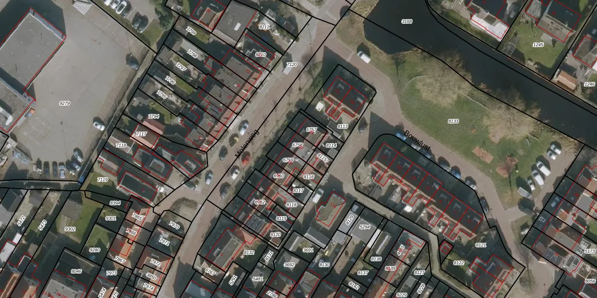 Het perceel waarop Molenweg 20 staat heeft een oppervlakte van 71 m². Dit is een klein perceel. De perceeloppervlakte wordt geregistreerd door het Kadaster. Gedetailleerde informatie over de maten van dit perceel kunt u vinden in het rapport Kadastrale kaart met maatvoering van Molenweg 20.