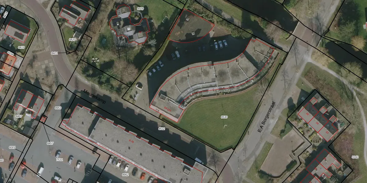 Mounekamp 75 is gelegen op kadastraal perceel JRE00A8530. Deze kadastrale aanduiding is uniek en wordt gebruikt door het Kadaster om eigendomsrechten en andere zakelijke rechten vast te leggen. Het perceel maakt onderdeel uit van de kadastrale gemeente Joure.