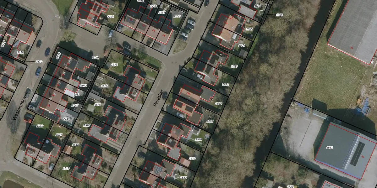 Het perceel waarop Pealskar 13-a staat heeft een oppervlakte van 315 m². Dit is een groot perceel. De perceeloppervlakte wordt geregistreerd door het Kadaster. Gedetailleerde informatie over de maten van dit perceel kunt u vinden in het rapport Kadastrale kaart met maatvoering van Pealskar 13-a.