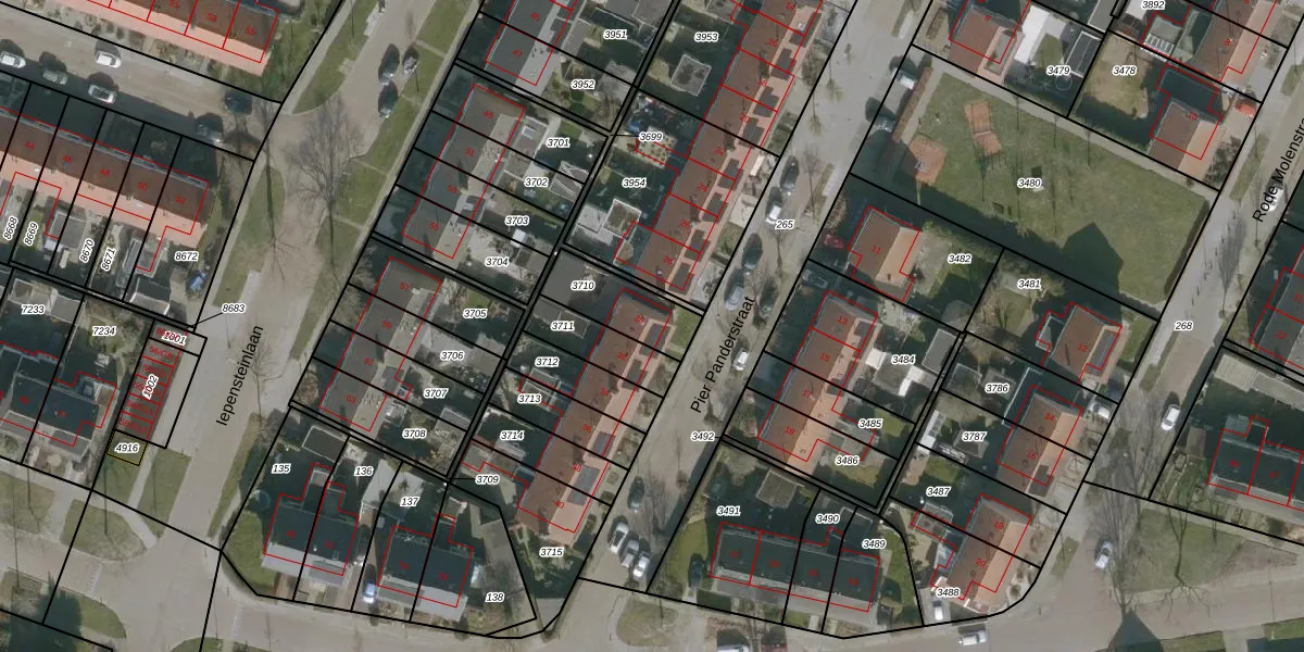 Pier Panderstraat 30 is gelegen op kadastraal perceel JRE00D3710. Deze kadastrale aanduiding is uniek en wordt gebruikt door het Kadaster om eigendomsrechten en andere zakelijke rechten vast te leggen. Het perceel maakt onderdeel uit van de kadastrale gemeente Joure.
