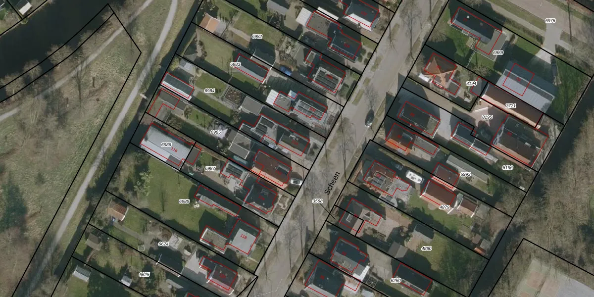 Het perceel waarop Scheen 110 staat heeft een oppervlakte van 702 m². Dit is een groot perceel. De perceeloppervlakte wordt geregistreerd door het Kadaster. Gedetailleerde informatie over de maten van dit perceel kunt u vinden in het rapport Kadastrale kaart met maatvoering van Scheen 110.