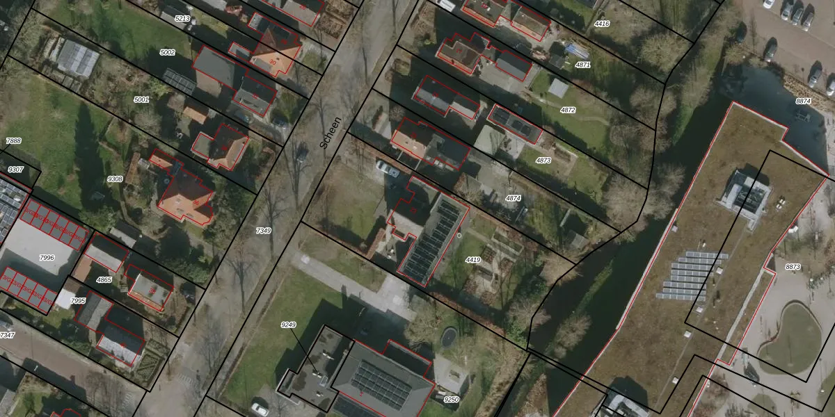 Gebruik de zoekbalk of klik op een perceel voor informatie over de adressen binnen dit perceel.
