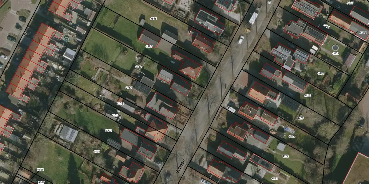 Het perceel waarop Scheen 24 staat heeft een oppervlakte van 956 m². Dit is een groot perceel. De perceeloppervlakte wordt geregistreerd door het Kadaster. Gedetailleerde informatie over de maten van dit perceel kunt u vinden in het rapport Kadastrale kaart met maatvoering van Scheen 24.