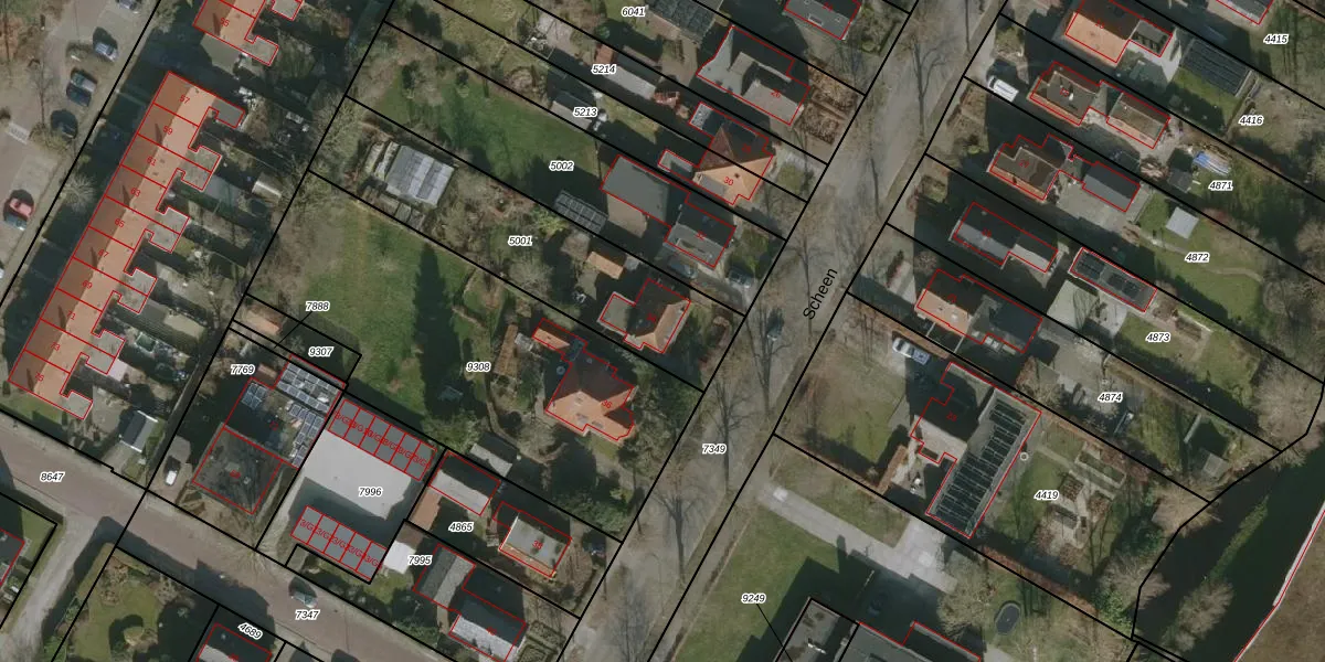 Het perceel waarop Scheen 34 staat heeft een oppervlakte van 896 m². Dit is een groot perceel. De perceeloppervlakte wordt geregistreerd door het Kadaster. Gedetailleerde informatie over de maten van dit perceel kunt u vinden in het rapport Kadastrale kaart met maatvoering van Scheen 34.