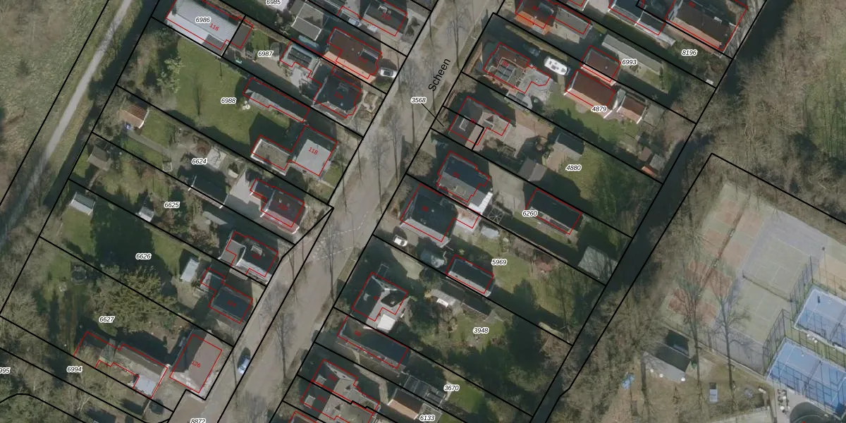 Het perceel waarop Scheen 95 staat heeft een oppervlakte van 893 m². Dit is een groot perceel. De perceeloppervlakte wordt geregistreerd door het Kadaster. Gedetailleerde informatie over de maten van dit perceel kunt u vinden in het rapport Kadastrale kaart met maatvoering van Scheen 95.