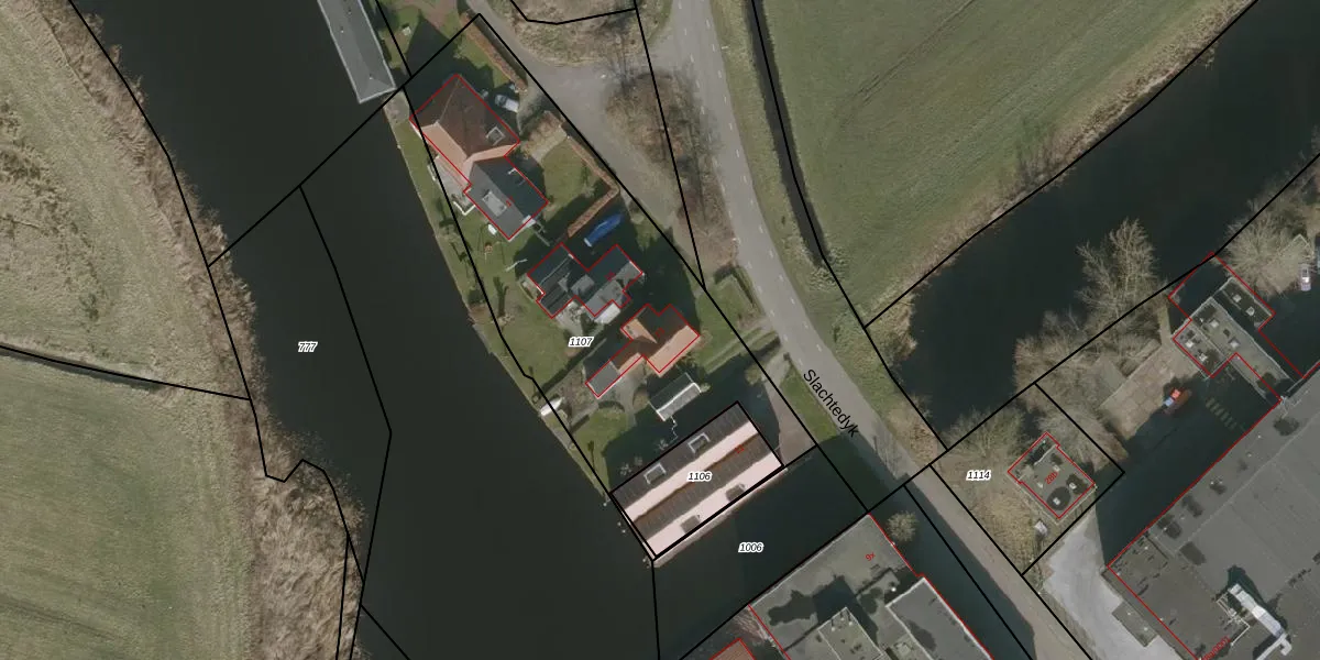 Slachtedyk 13 is gelegen op kadastraal perceel JRE00C1107. Deze kadastrale aanduiding is uniek en wordt gebruikt door het Kadaster om eigendomsrechten en andere zakelijke rechten vast te leggen. Het perceel maakt onderdeel uit van de kadastrale gemeente Joure.