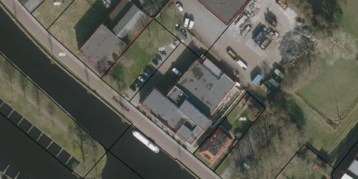 Het perceel waarop Slachtedyk 24-B staat heeft een oppervlakte van 13,0 ha. Dit is een zeer groot perceel. De perceeloppervlakte wordt geregistreerd door het Kadaster. Gedetailleerde informatie over de maten van dit perceel kunt u vinden in het rapport Kadastrale kaart met maatvoering van Slachtedyk 24-B.