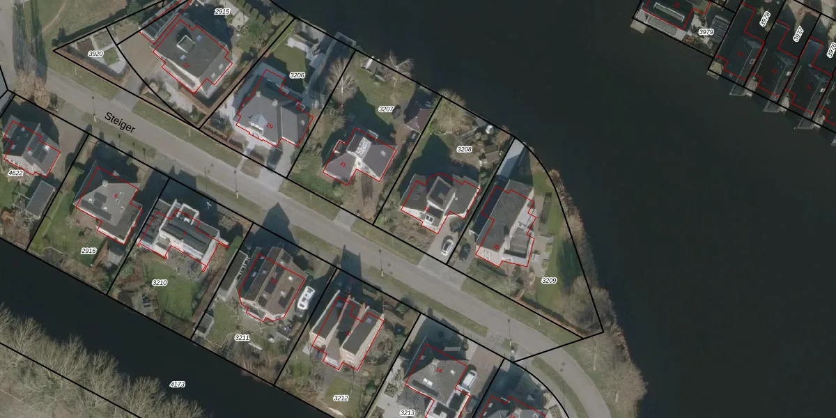 Het perceel waarop Steiger 33 staat heeft een oppervlakte van 696 m². Dit is een groot perceel. De perceeloppervlakte wordt geregistreerd door het Kadaster. Gedetailleerde informatie over de maten van dit perceel kunt u vinden in het rapport Kadastrale kaart met maatvoering van Steiger 33.