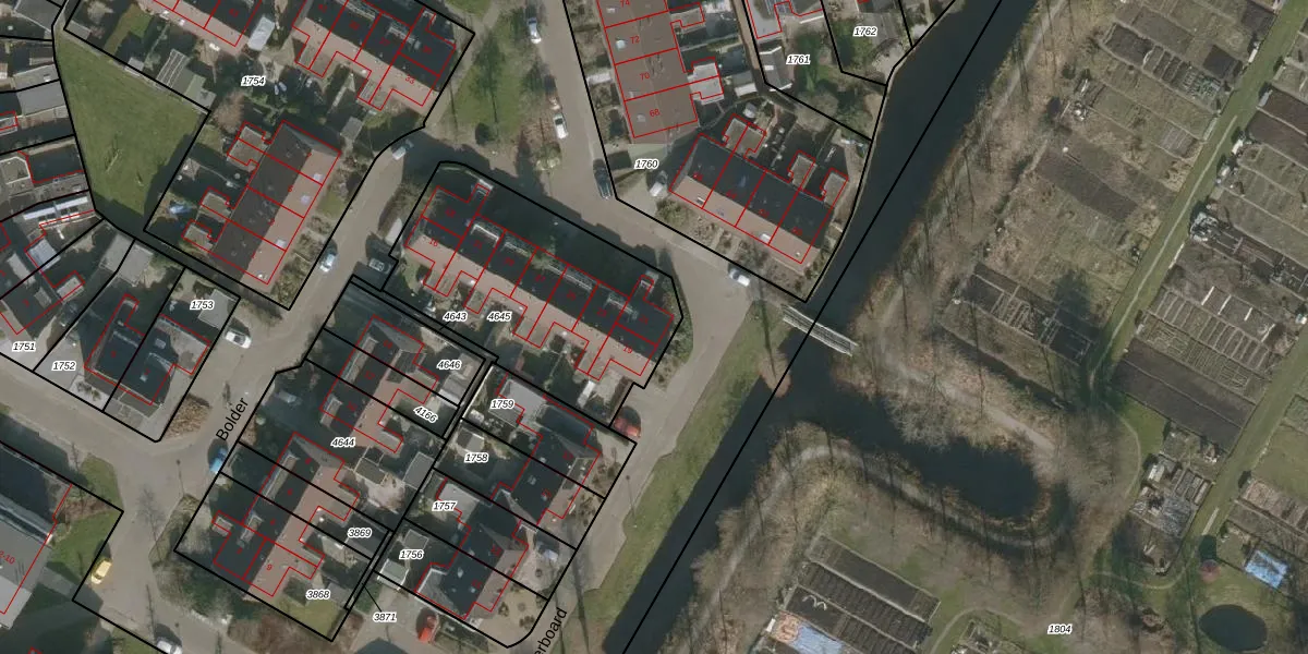 Het perceel waarop Stjoerboard 21 staat heeft een oppervlakte van 1016 m². Dit is een zeer groot perceel. De perceeloppervlakte wordt geregistreerd door het Kadaster. Gedetailleerde informatie over de maten van dit perceel kunt u vinden in het rapport Kadastrale kaart met maatvoering van Stjoerboard 21.