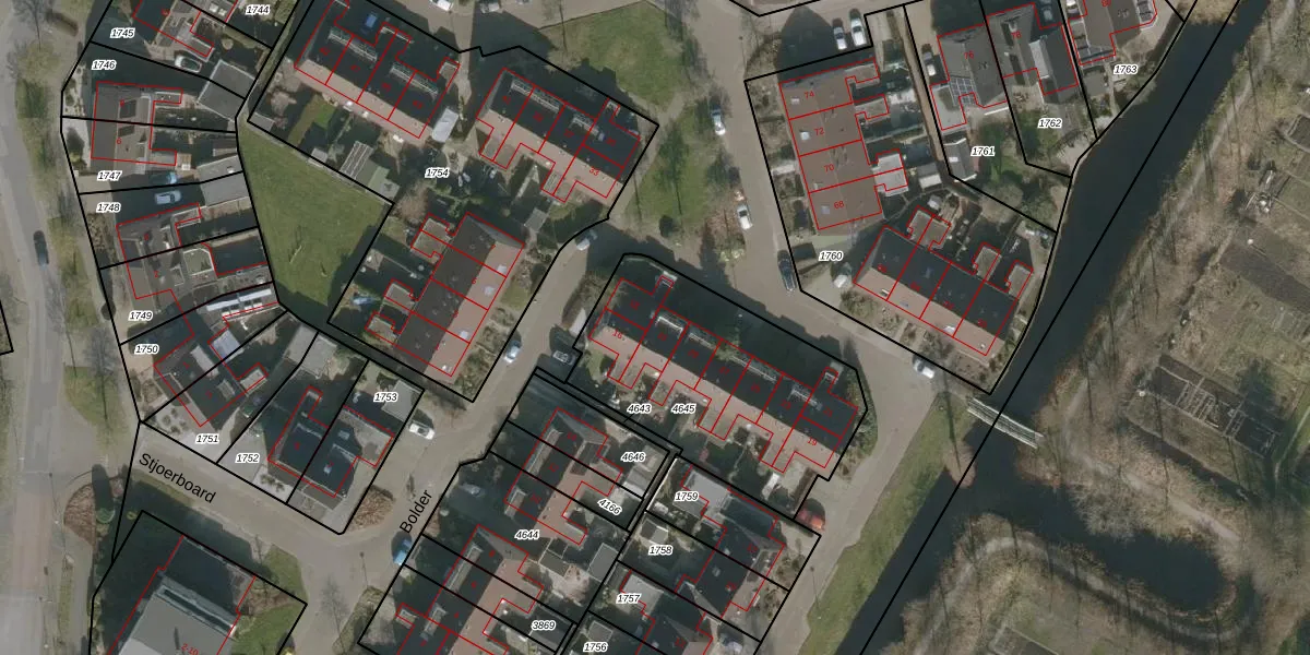 Het perceel waarop Stjoerboard 31 staat heeft een oppervlakte van 1016 m². Dit is een zeer groot perceel. De perceeloppervlakte wordt geregistreerd door het Kadaster. Gedetailleerde informatie over de maten van dit perceel kunt u vinden in het rapport Kadastrale kaart met maatvoering van Stjoerboard 31.