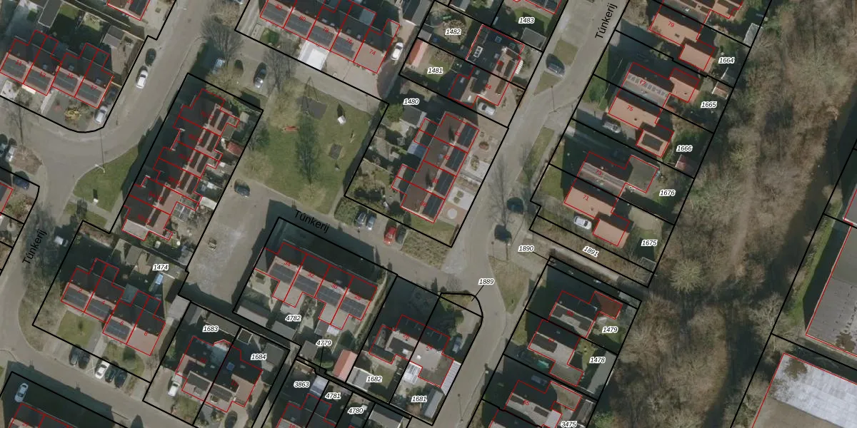 Het perceel waarop Túnkerij 36 staat heeft een oppervlakte van 1888 m². Dit is een zeer groot perceel. De perceeloppervlakte wordt geregistreerd door het Kadaster. Gedetailleerde informatie over de maten van dit perceel kunt u vinden in het rapport Kadastrale kaart met maatvoering van Túnkerij 36.