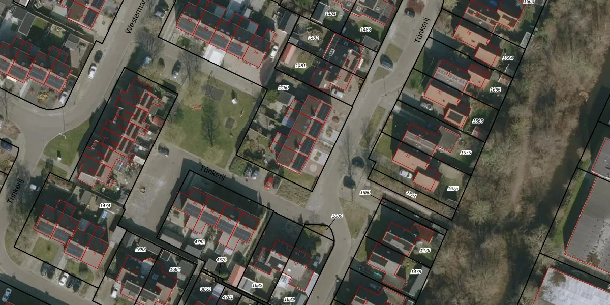 Het perceel waarop Túnkerij 38 staat heeft een oppervlakte van 1888 m². Dit is een zeer groot perceel. De perceeloppervlakte wordt geregistreerd door het Kadaster. Gedetailleerde informatie over de maten van dit perceel kunt u vinden in het rapport Kadastrale kaart met maatvoering van Túnkerij 38.