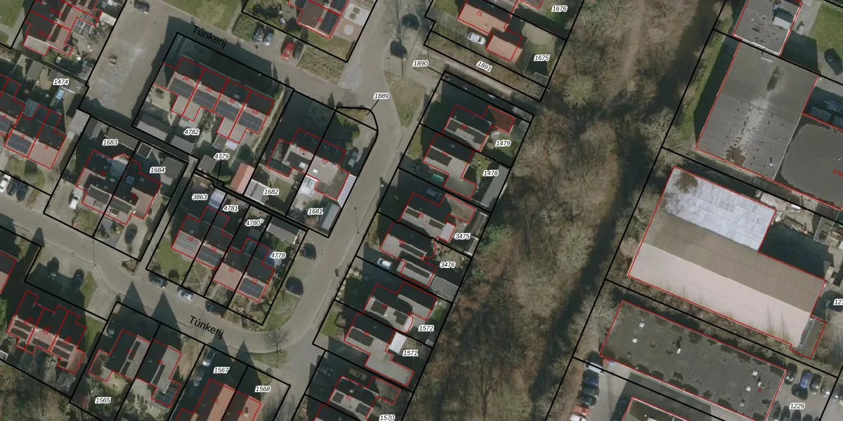 Túnkerij 65 is gelegen op kadastraal perceel JRE00D3475. Deze kadastrale aanduiding is uniek en wordt gebruikt door het Kadaster om eigendomsrechten en andere zakelijke rechten vast te leggen. Het perceel maakt onderdeel uit van de kadastrale gemeente Joure.