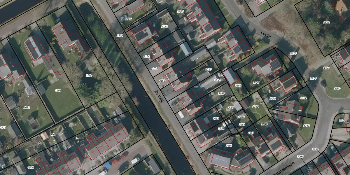 Gebruik de zoekbalk of klik op een perceel voor informatie over de adressen binnen dit perceel.